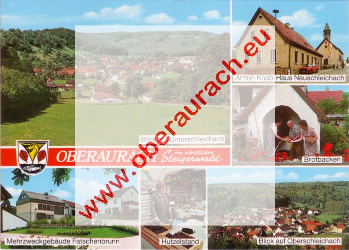 Motiv 1: Blick auf Unterschleichach / Armin-Knab-Haus Neuschleichach / Brotbacken Oberschleichach / Mehrzweckgebäude Fatschenbrunn / Hutzelstand Fatschenbrunn / Blick auf Oberschleichach